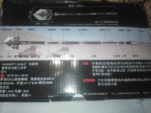 The goods came very quickly. On May 15 I made an order, and on the 19th evening I called. In the morning, 20 courier delivered to the door. Everything is alright. The box looks awesome with a trigger. Compass working surprisingly. The knife is too sharp.